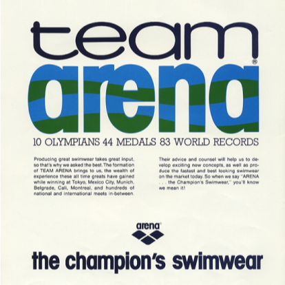 En 1974, arena a pris sous contrat les premiers athlètes d'élite. Horst Dassler a compris que le sponsoring sportif était la clé du succès de sa marque. Pour les Jeux olympiques suivants, arena a donc signé d'autres nageurs.